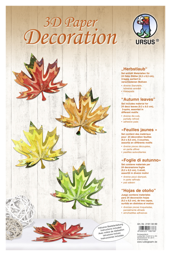 Bastelset für 3D Papier Dekoration "Herbstlaub"