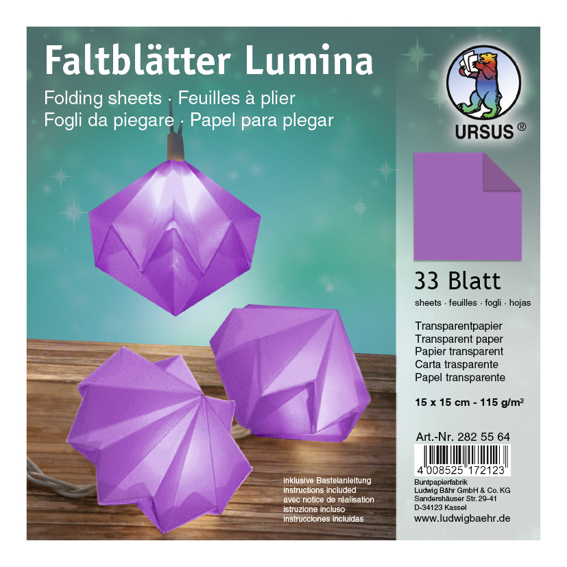 Faltblätter LUMINA incl. Bastelanleitung 15x15 cm Transparentpapier violett 33 Blatt von URSUS®