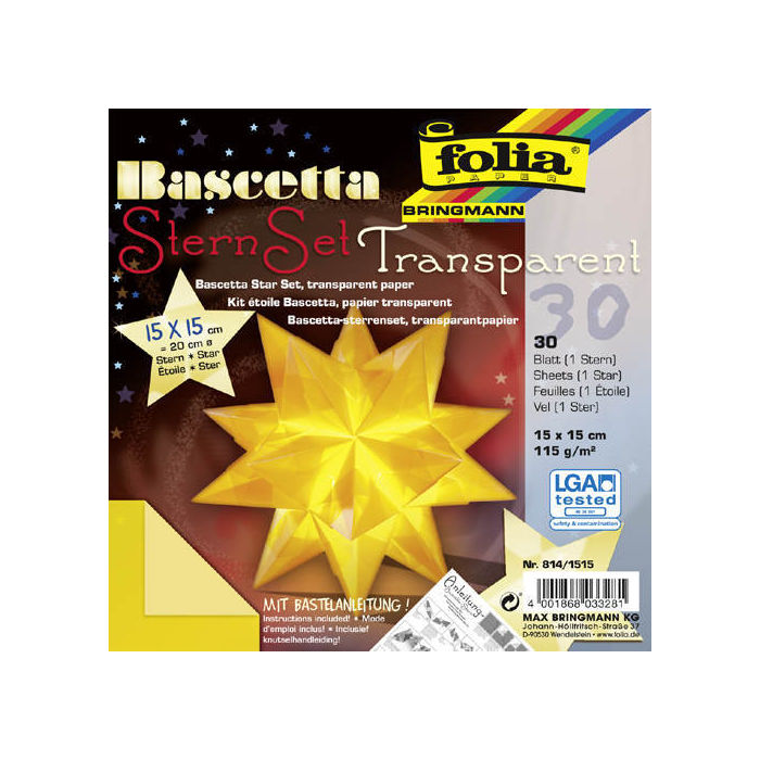 Bascetta Stern Set 15x15 cm Transparentpapier gelb 32 Blatt incl. Anleitung von Folia