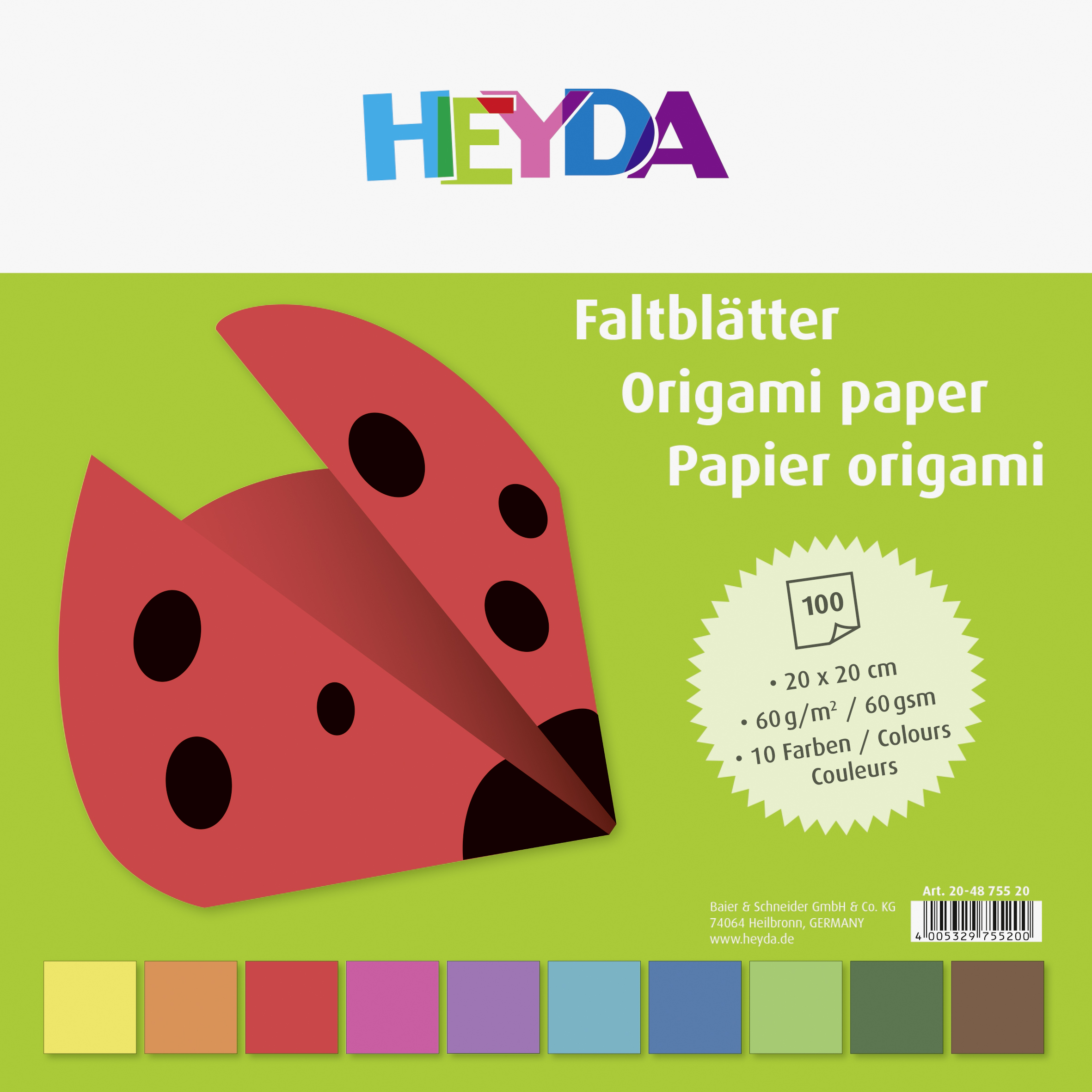 Faltblätter Set 20x20cm Origami-Papier 10 Farben 100 Blatt 60 g/m² HEYDA