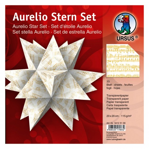 Aurelio Stern Set ca.20x20 cm Transparentpapier weiß mit goldenen Noten 33 Blatt von URSUS®