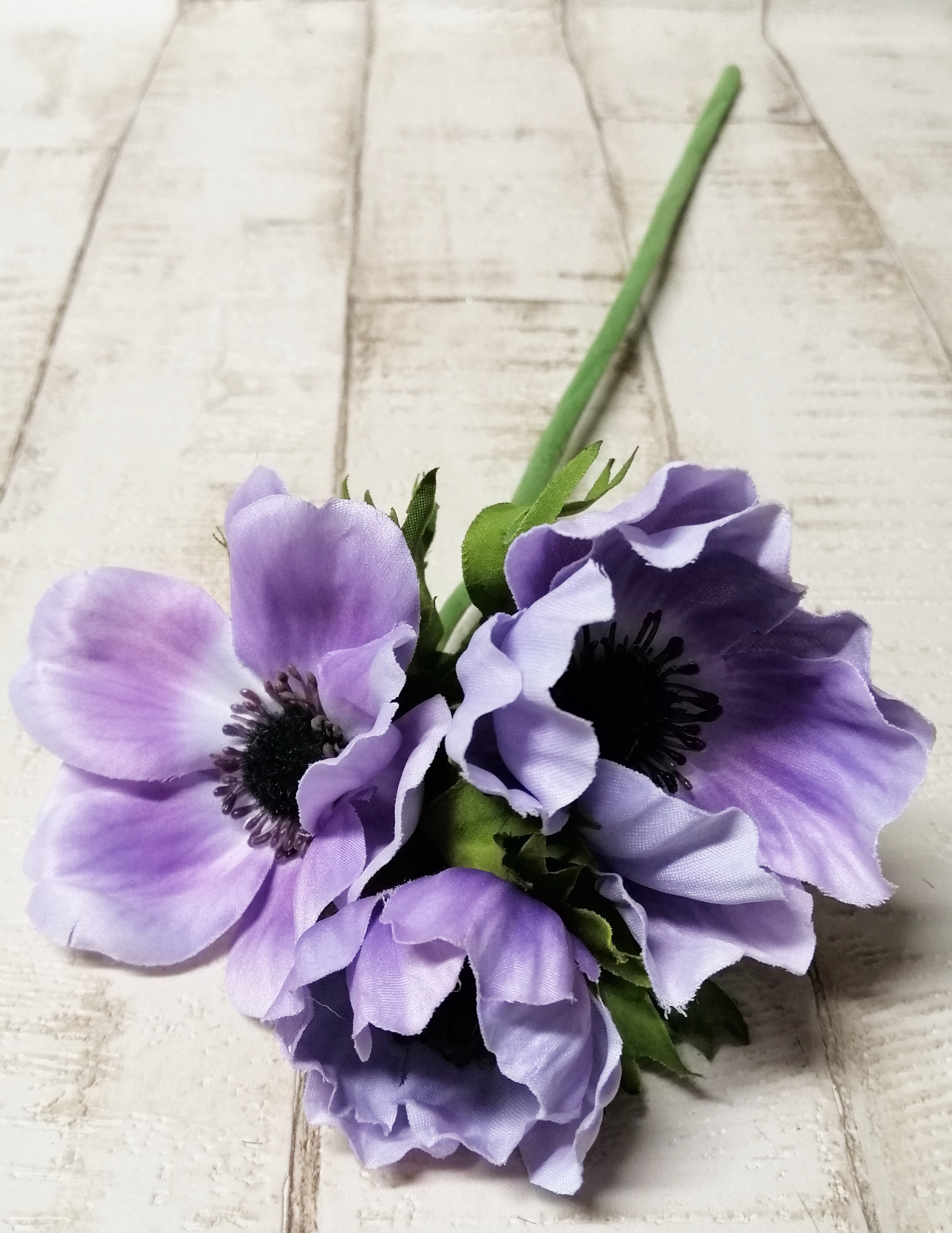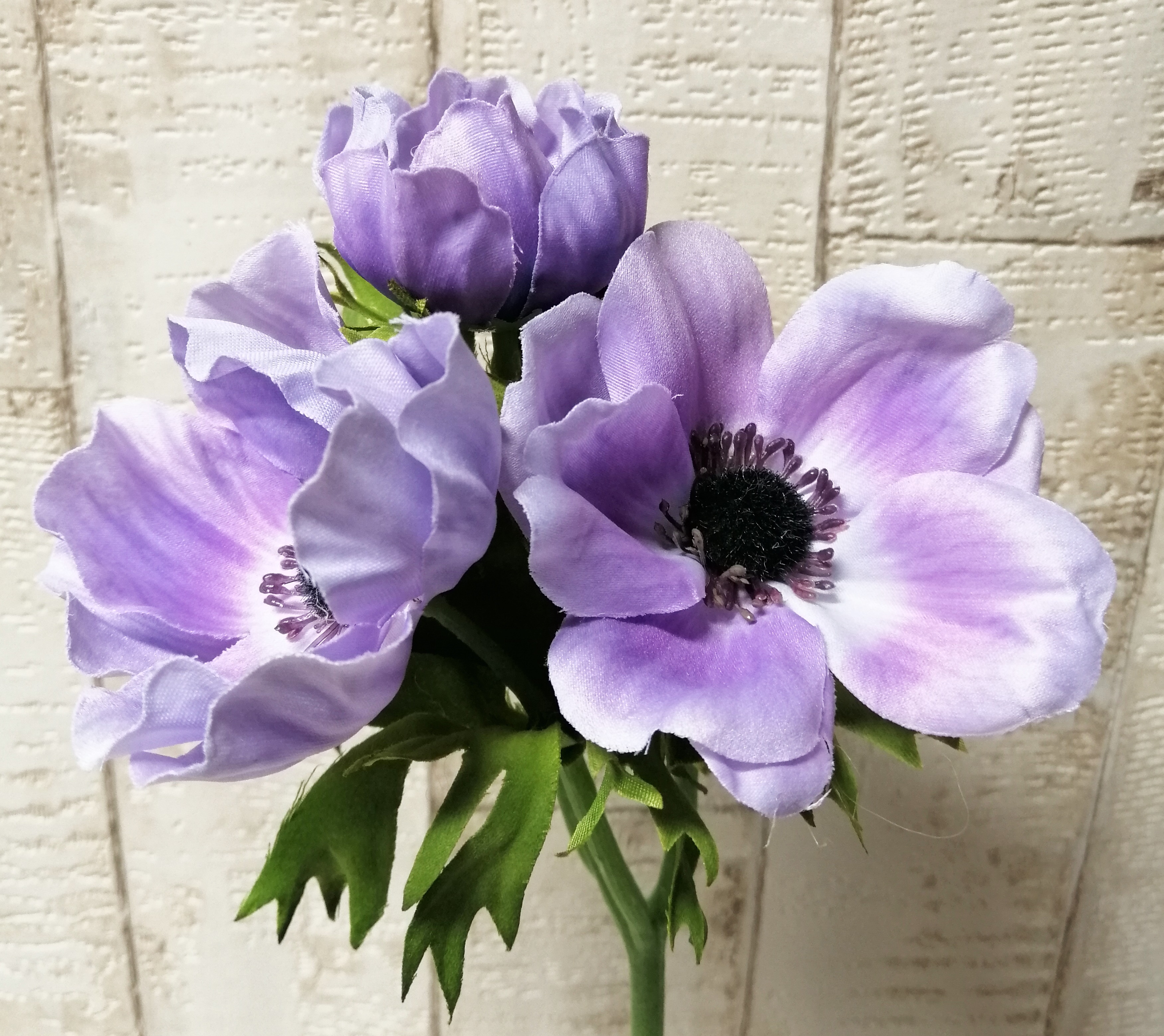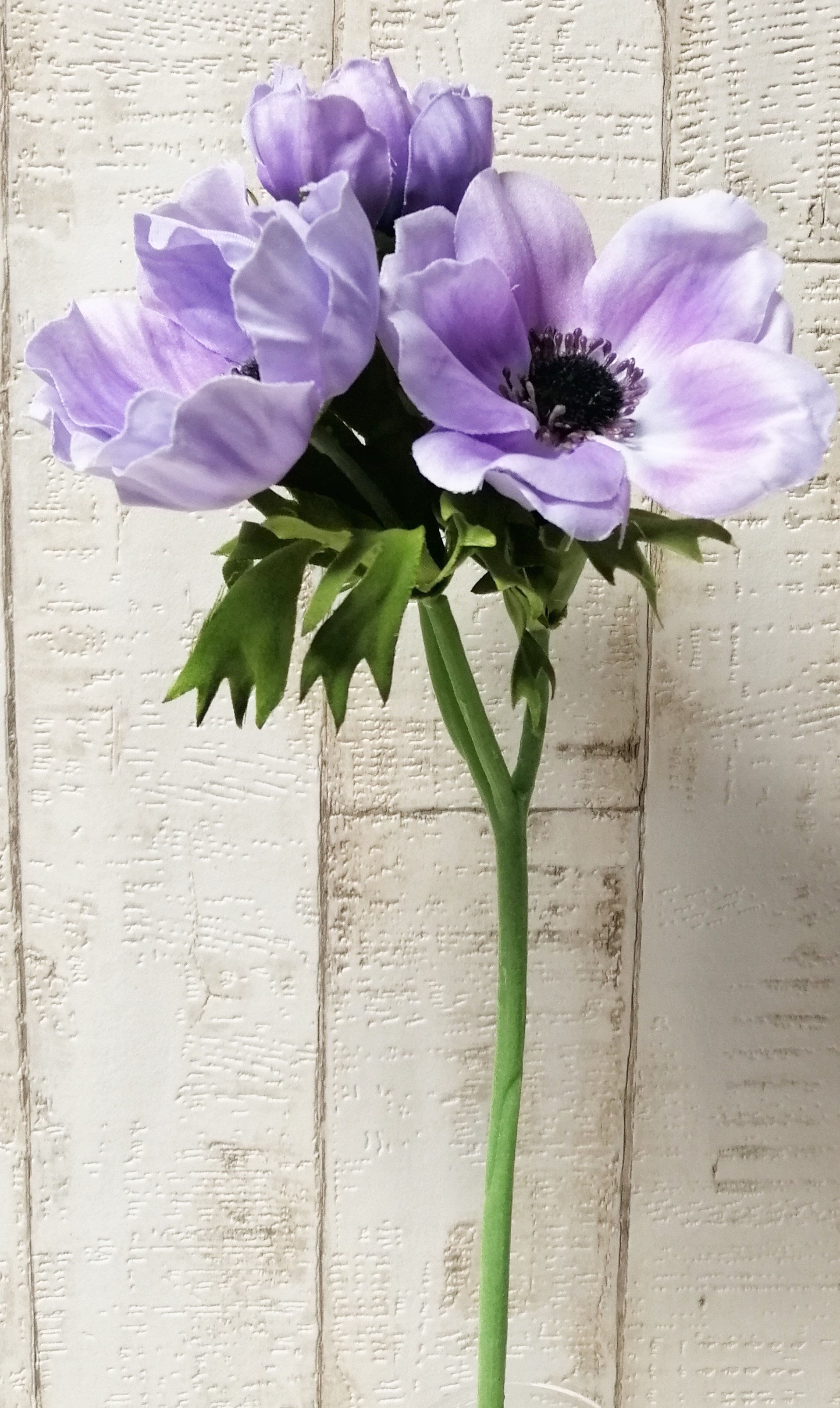 Anemone mit 2Blüten und 1 Knospe hell-lila Kunstblume