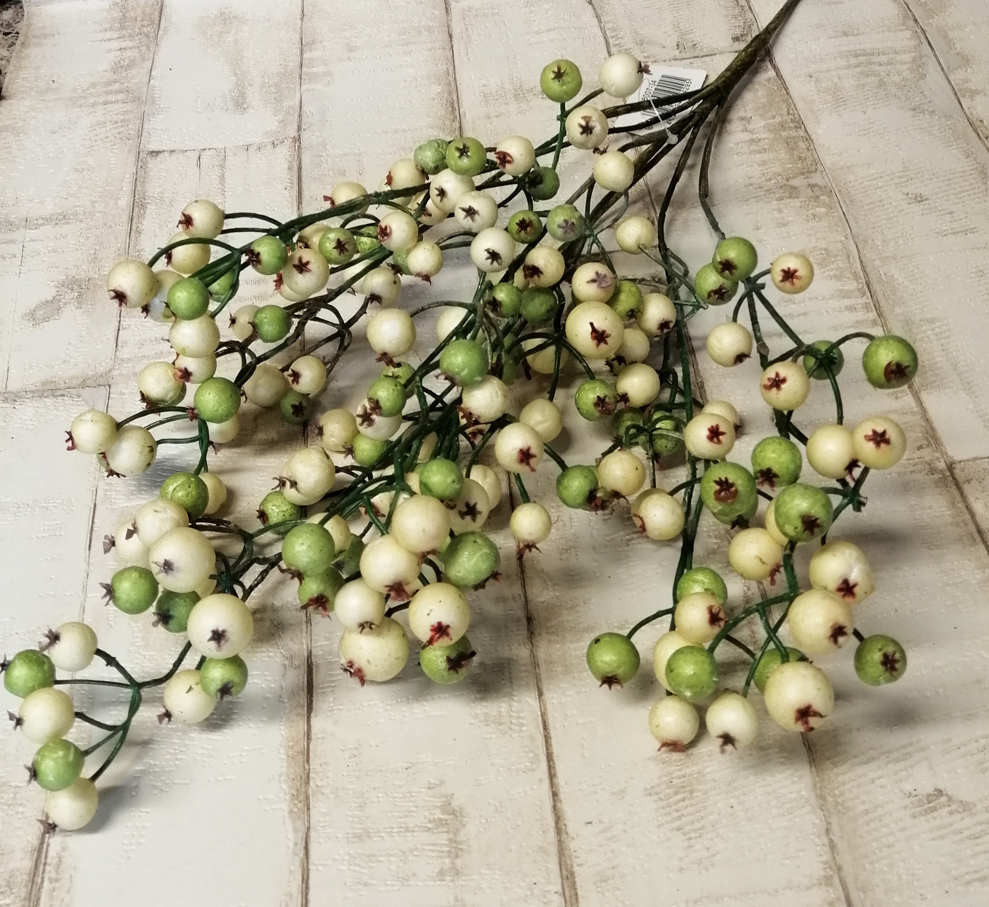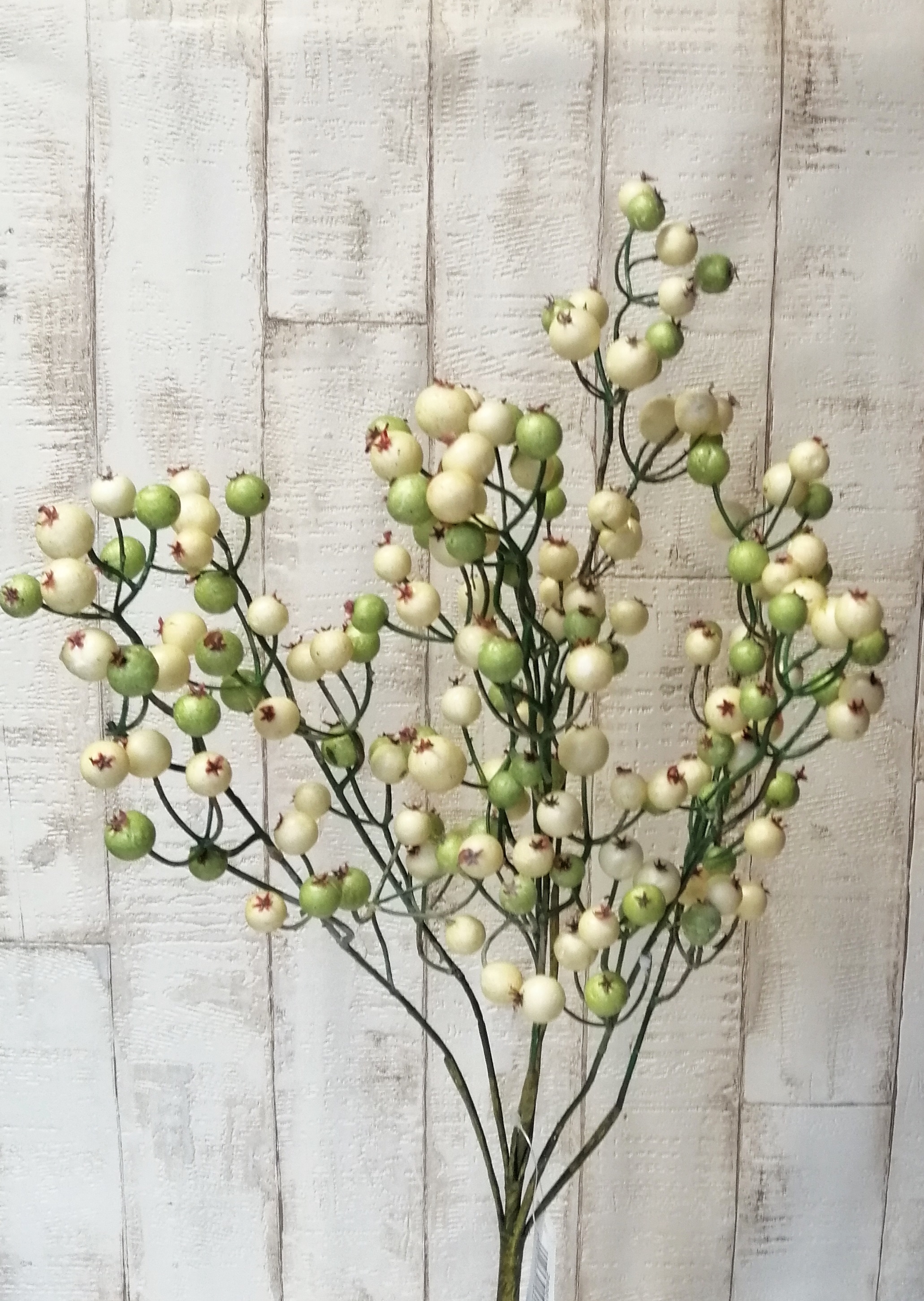 Beeren Busch 7tlg. 55/35cm weiß-grün künstlich Herbst Winter Dekoration basteln