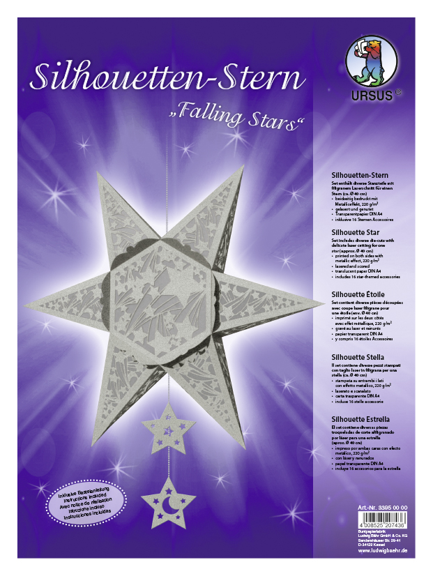 Silhouetten-Stern "Falling Stars" gestanzt ca.40cm silber mit Bastelanleitung von URSUS®