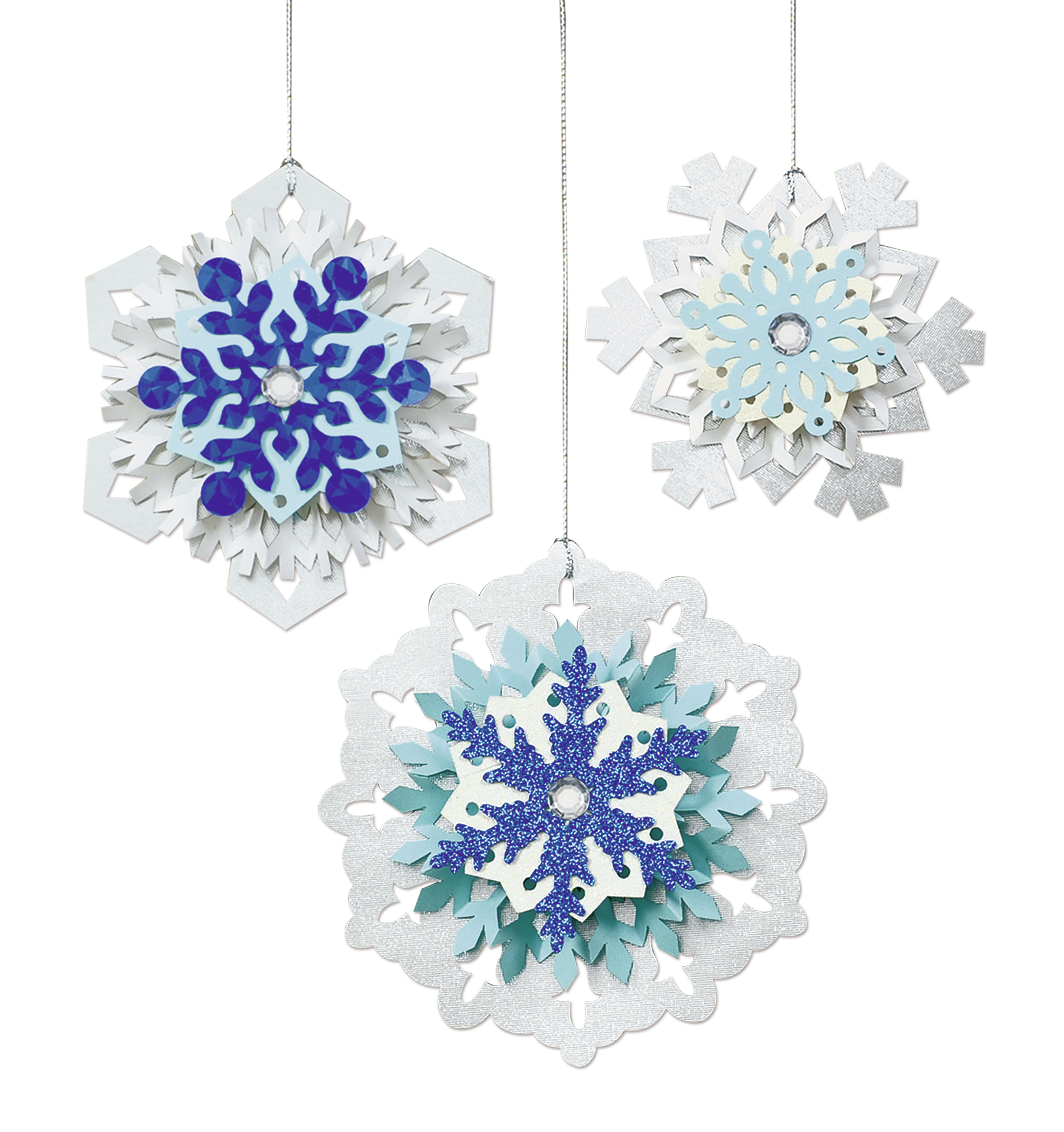Bastelset für 6 Schneekristalle "Paper Snowfkaes" 3D blau silber von URSUS®