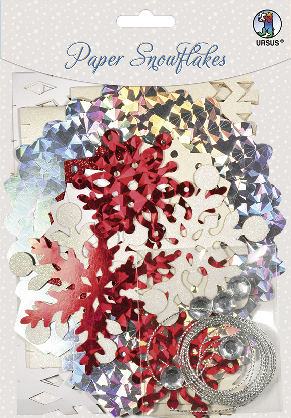 Bastelset für 6 Schneekristalle "Paper Snowfkaes" 3D rot silber von URSUS®