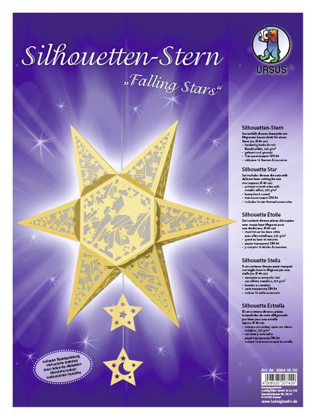Silhouetten-Stern "Orient" gestanzt ca.40cm gold mit Bastelanleitung von URSUS® - Kopie