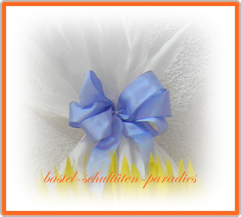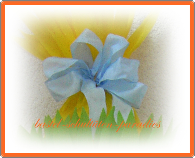 an der Schleifen befinden sich zwei schmale Bänder zum Schließen der Schultüte