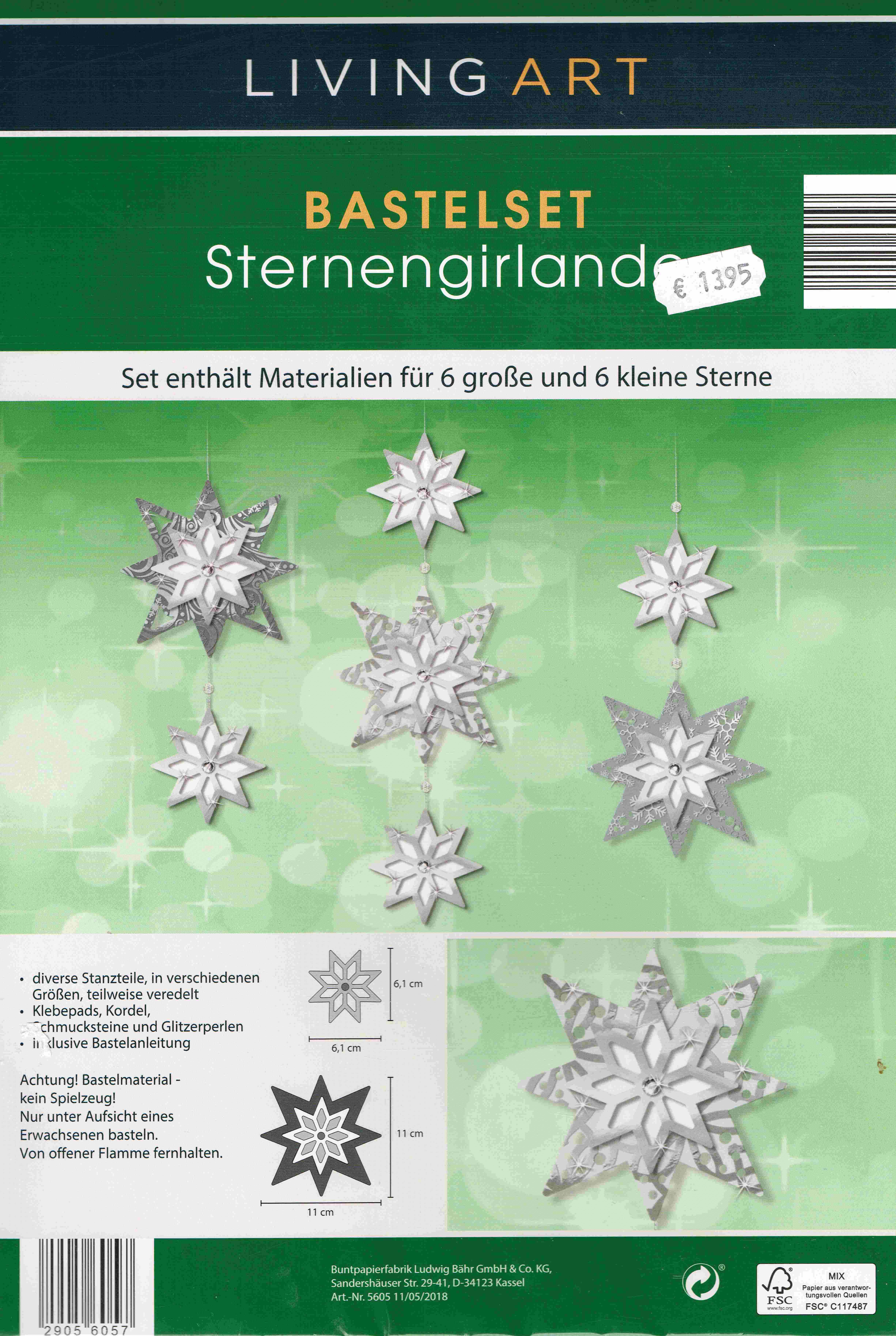 Sternen-Girlande silber 12 Stück gestanzt mit Bastelanleitung von URSUS®
