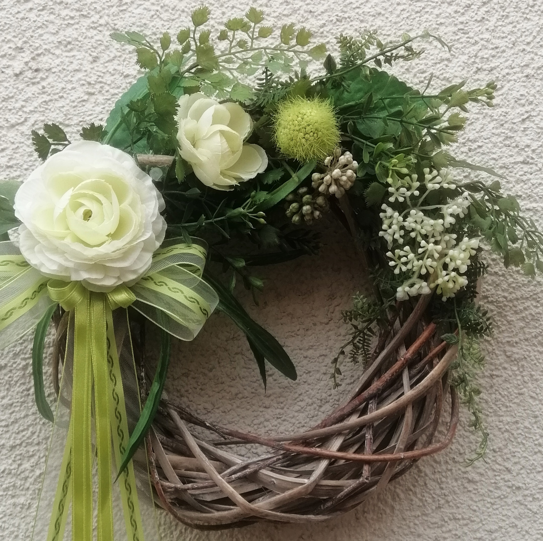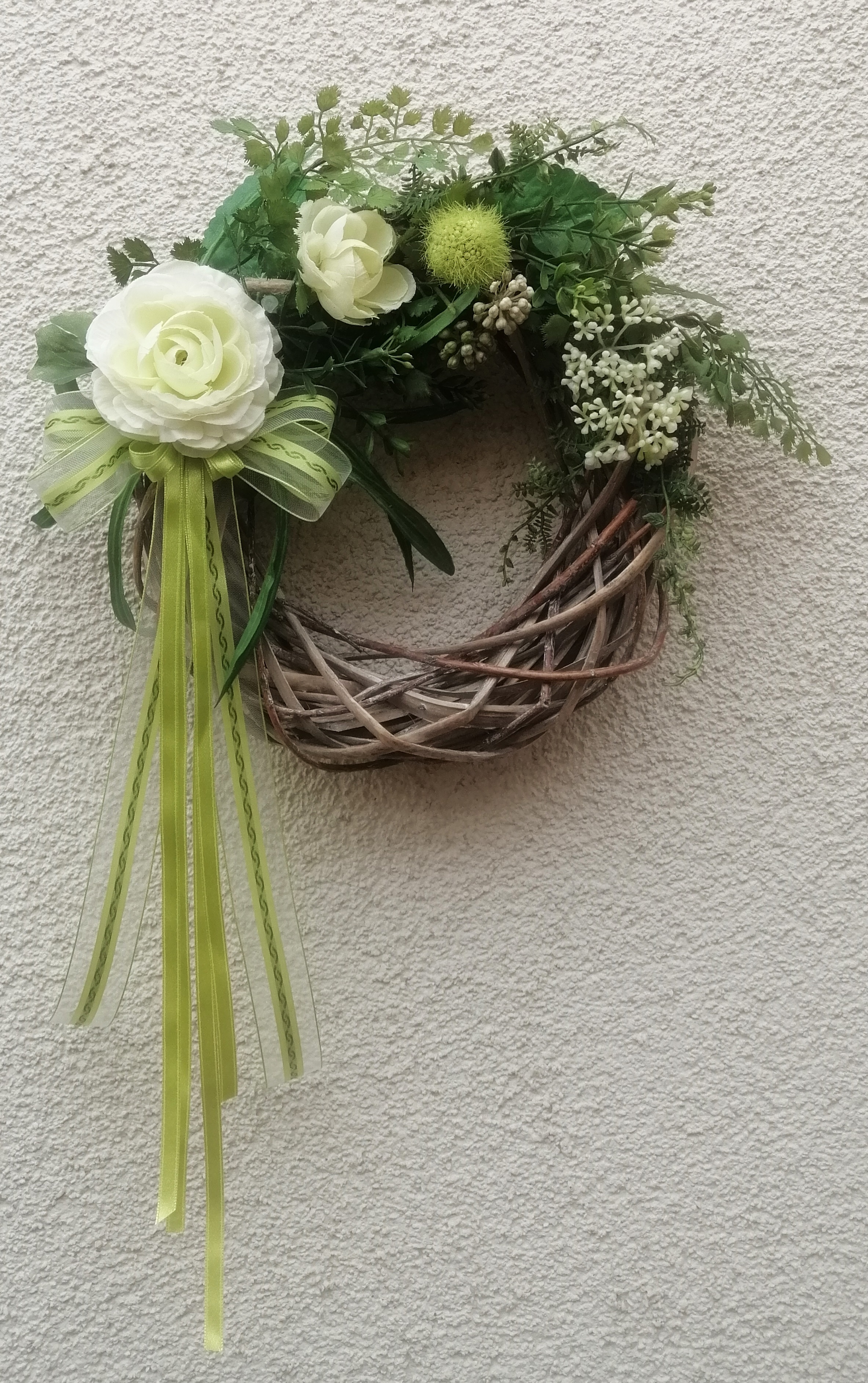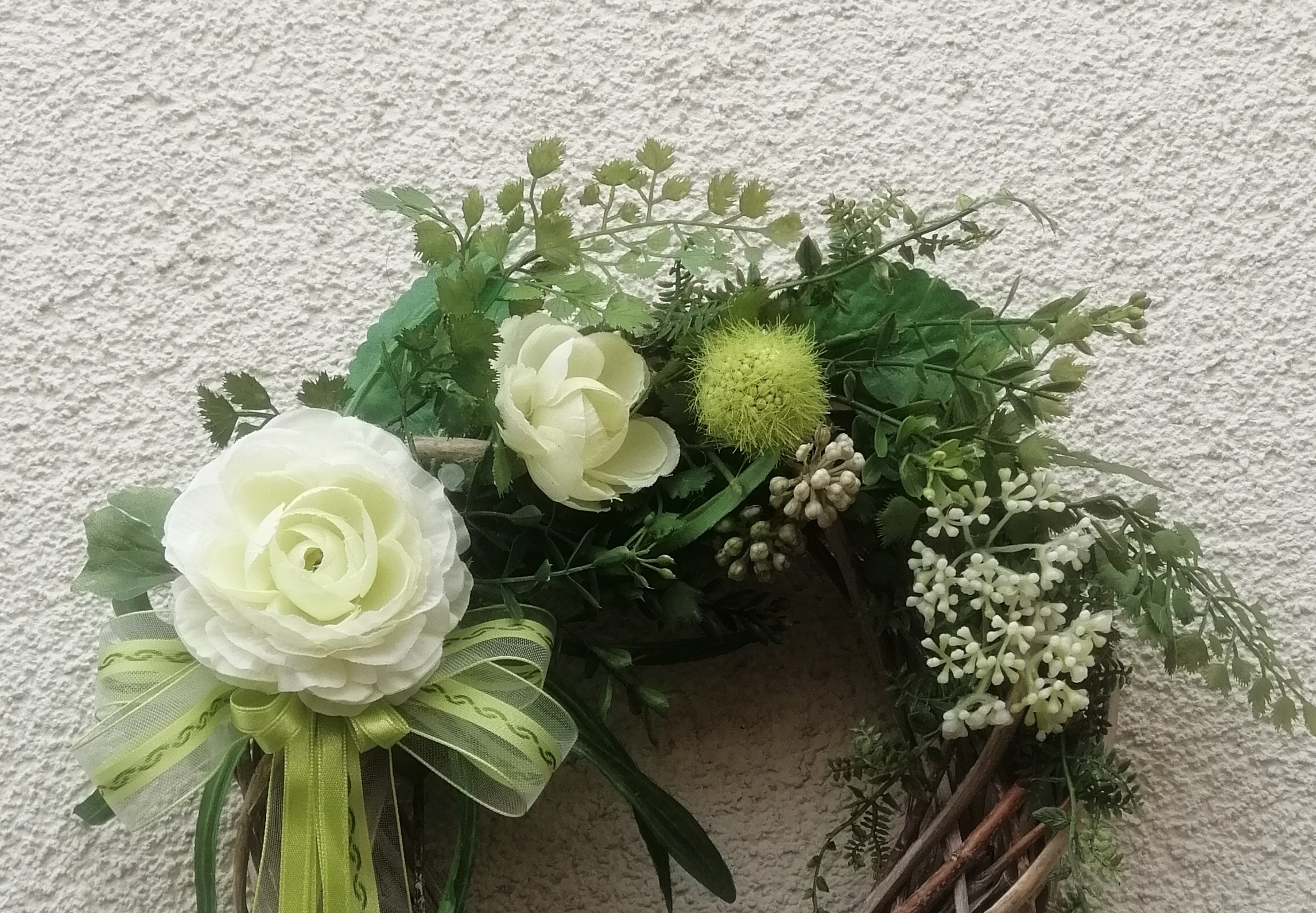 Türkranz Landhaus grün weiß 30x40cm Handarbeit Einzelstück künstlich