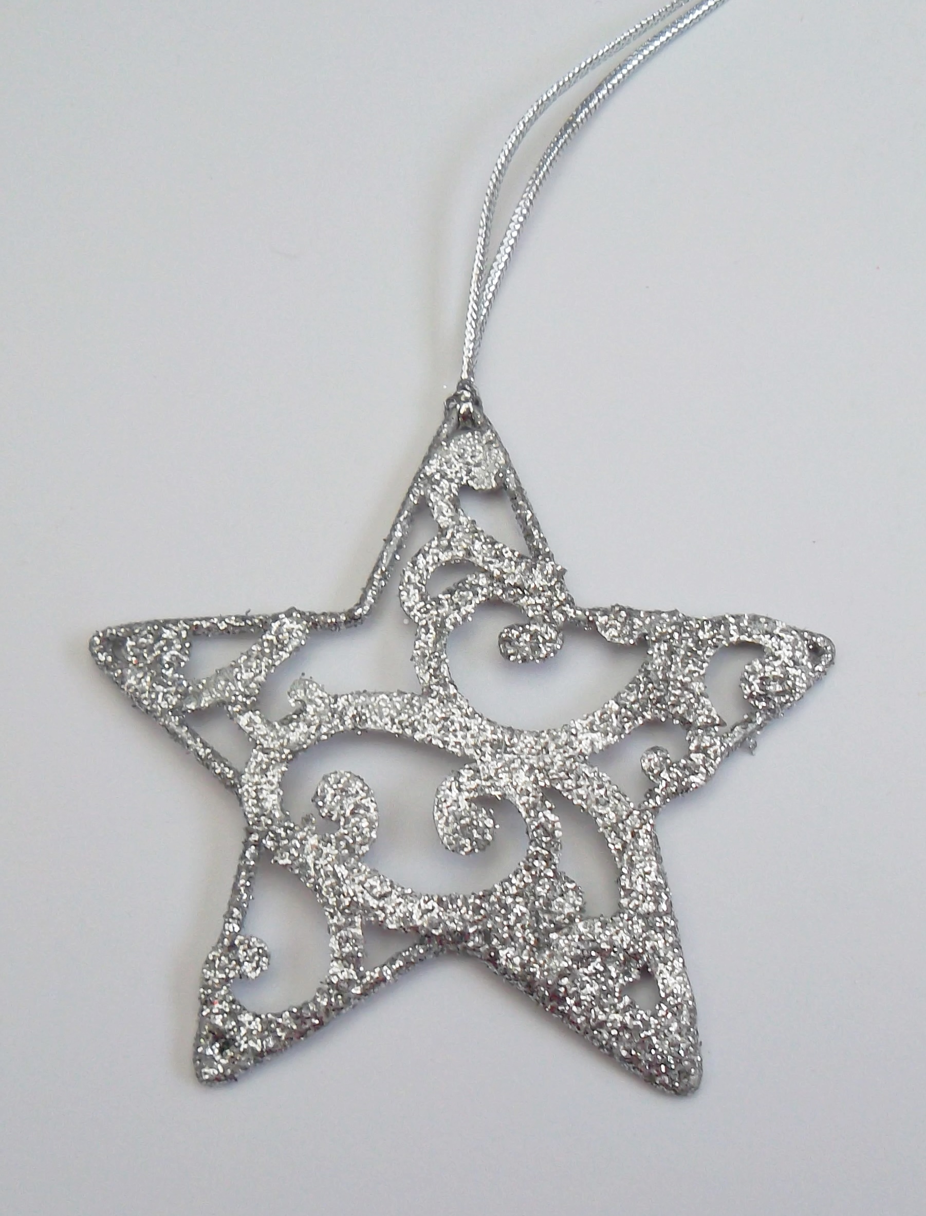 Metall-Stern aus Metall mit Glitzer in Silber mit Aufhänger