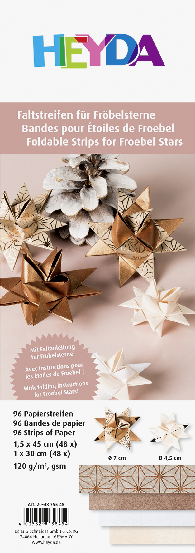 Fröbelstern-Streifen mit Faltanleitung rosé, kupfer, natur, roségold 2 Größen Heyda